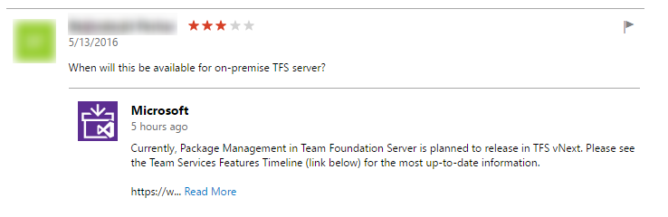 In the two months since the launch of Ratings and Reviews on the Visual Studio Marketplace, we’ve seen great participation from our community. Well over 1000 reviews have been posted on the Marketplace already. But while we enabled a great way for users to express their opinion, the publisher’s voice was yet to be heard. Today, we’re glad to announce that’s no longer the case, publishers can now respond to the reviews their extensions receive on the Marketplace.