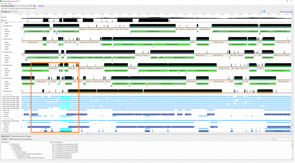 Nsight Systems is a low overhead system-wide profiling tool, providing the insights developers need to analyze and optimize software performance. It uses GPU tracing, CPU sampling and tracing, and OS thread state tracing to visualize an application’s algorithms, helping developers identify the largest opportunities to optimize their code.
